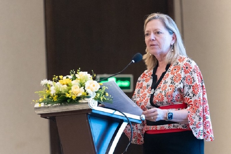 Bà Mariam Sherman, Giám đốc Ngân hàng Thế giới tại Việt Nam, Campuchia và Lào (trái) phát biểu chào mừng Hội nghị