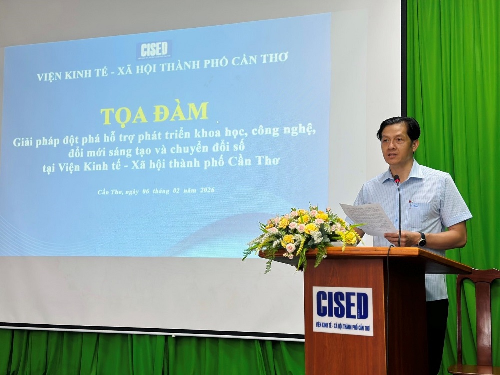 Ngày 06 tháng 02 năm 2026, Viện Kinh tế - Xã hội thành phố Cần Thơ đã tổ chức Tọa đàm khoa học với chủ đề “Giải pháp đột phá hỗ trợ phát triển khoa học, công nghệ, đổi mới sáng tạo và chuyển đổi số của Viện Kinh tế - Xã hội thành phố Cần Thơ”. Tọa đàm nhằm mục tiêu là lấy ý kiến tham vấn của viên chức, người lao động Viện Kinh tế – Xã hội thành phố Cần Thơ nhằm đề xuất các giải pháp đột phá, khả thi hỗ trợ phát triển khoa học, công nghệ, đổi mới sáng tạo và chuyển đổi số tại Viện, qua đó nâng cao chất lượng hoạt động nghiên cứu, tham mưu chính sách, làm cơ sở tham mưu Ủy ban nhân dân thành phố Cần Thơ.