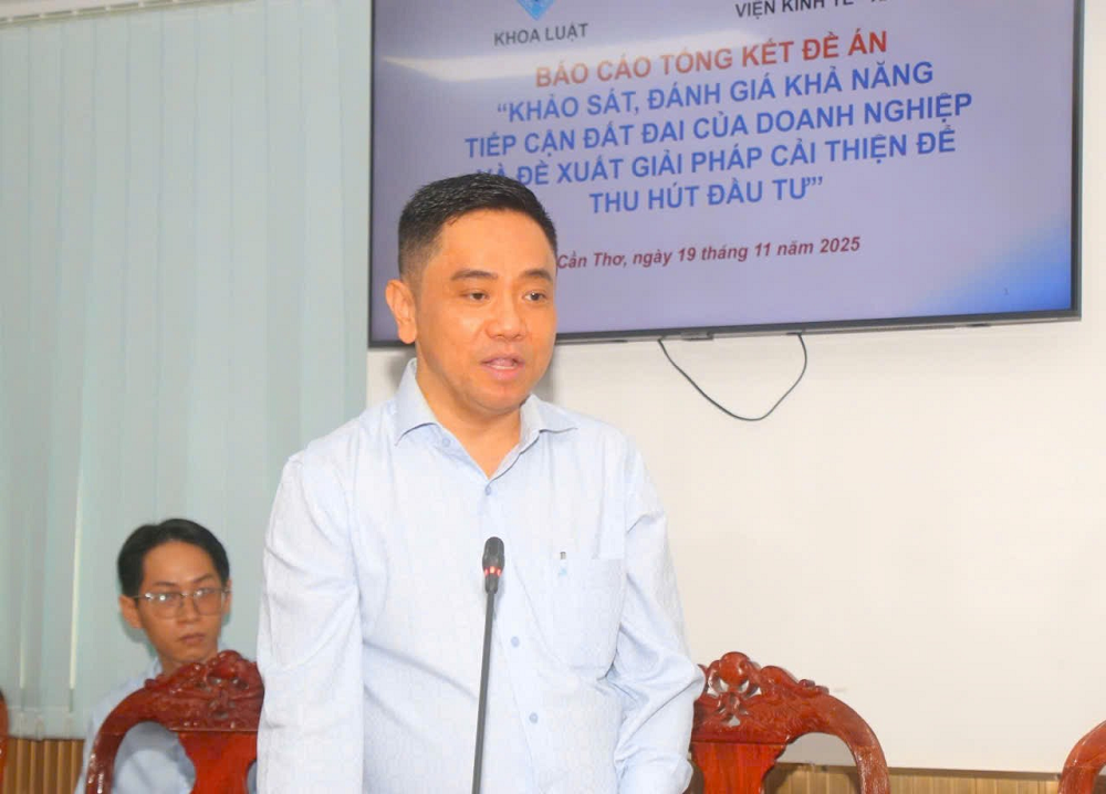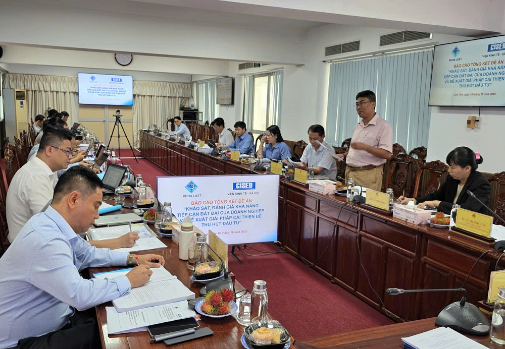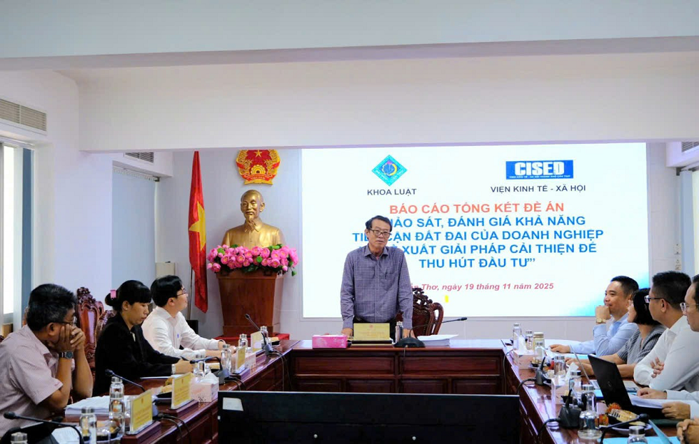Viện Kinh tế - Xã hội đã phối hợp Khoa Luật - Đại học Cần Thơ thực hiện Đề án “Khảo sát, đánh giá khả năng tiếp cận đất đai của doanh nghiệp và đề xuất giải pháp cải thiện để thu hút đầu tư ở thành phố Cần Thơ” được UBND thành phố Cần Thơ phê duyệt đề cương tại Quyết định số 2202/QĐ - UBND ngày 07 tháng 10 năm 2024. Sau 18 tháng thực hiện từ tháng 01/2024 - 6/2025 đã hoàn thành các nội dung của đề án.