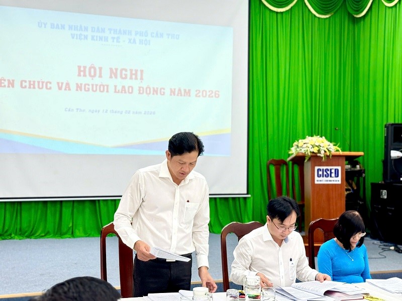 Ngày 12 tháng 2 năm 2026, trong không khí phấn khởi chào mừng thành công Đại hội Đại biểu toàn quốc lần thứ XIV của Đảng và chào đón Năm mới 2026, Viện Kinh tế - Xã hội thành phố Cần Thơ tổ chức Hội nghị Viên chức - Người lao động năm 2026. Hội nghị là sự kiện quan trọng nhằm đánh giá kết quả thực hiện nhiệm vụ năm 2025 và phương hướng, nhiệm vụ trọng tâm cho năm 2026